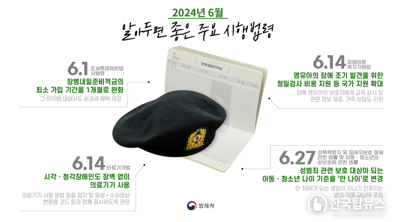 법제처는 29일 이러한 내용을 포함해 6월에 모두 65개의 법령을 새로 시행한다고 밝혔다.