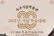 ㈜한국탑뉴스 송행임 기자 | 속초시가 11월을 맞아 예술과 학술, 반려동물이 함께하는 다채로운 문화행사를 연이어 개최한다. 오는 6일부터 9일까지 시립박물관, 문화예술회관, 엑스포타워 광장에서 속초의 가을을 물들이는 문화축제가 이어진다. 6일 속초시립박물관은 개관 20주년을 기념해 학술대회를 연다. 이번 학술대회는 박물관이 20년간 축적해 온 소장자료의 학술 가치를 재조명하고 향후 전시·교육·연구의 방향을 모색하기 위한 자리다. 문서, 호구, 전적, 전통과학, 가전(家傳) 등 주요 자료군을 주제로 △율곡국학진흥원 정우진 연구위원·오일훈 연구원·김충원 연구원 △한국학중앙연구원 허원영 연구원·이태희 연구원의 발표와 지정토론이 이어진다. 7일 저녁 7시에는 속초시립풍물단이 제18회 정기연주회 ‘스무 해를 담다 “풍악”’을 속초문화예술회관 대공연장에서 선보인다. 전통 장단을 기반으로 한 창작 타악 공연으로, 모듬북·대북·버나놀이·소고놀이 등이 현대적 조명 연출과 결합해 전통음악의 현대적 감각이라는 새로운 면모를 선보인다. 9일 오전 10시에는 엑스포타워 광장에서 ‘제6