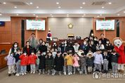 ㈜한국탑뉴스 송행임 기자 | 울산 중구의회가 설 명절을 앞두고 관내 어린이집 원생과 학부모, 교직원을 초청, 견학 행사를 마련했다. 중구의회는 11일 중구 병영 도담어린이집 원생과 학부모, 보육교사 등 50여명이 참가한 가운데 중구의회 의정활동 체험행사를 진행했다. 이날 행사에는 박경흠 의장과 김도운 의원이 참석해 의회 홍보영상 시청, 기초의회의 역할과 기능 강의, 의회시설 견학, 본회의장 체험활동, 기념품 전달 등이 펼쳐졌다. 특히 중구를 상징하는 대표 캐릭터인 ‘울산큰애기’가 함께 동행해 어린이집 원생들과 기념촬영을 하며 뜻깊은 시간을 가졌다. 이번 체험활동에는 원생은 물론 학부모도 함께 동행해 평소 생소하게만 느껴졌던 기초의회를 직접 보고, 느껴보는 기회를 마련했다. 중구의회는 지역 어린이집과 초·중·고 학생을 대상으로 지방의회의 기능과 역할을 알리고 풀뿌리민주주의의 중요성을 몸소 체험할 수 있는 기회를 제공하는 견학·체험 교실을 운영중이며 지방자치 교육과 모의의회 등의 프로그램으로 구성돼 있다. 박경흠 의장은 “자라나는 아이들이 본회의장에서 정책과 행정집행의 상징과도