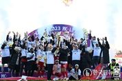한국탑뉴스 유용식 기자 | WK리그 통합 11연패를 이뤄낸 인천현대제철(이하 현대제철) 김은숙 감독은 고단했던 한 시즌을 돌아보며 눈시울을 붉혔다. 김은숙 감독이 이끄는 현대제철이 지난 25일 열린 2023 WK리그 챔피언 결정전 2차전에서 장창의 선제골, 손화연의 해트트릭, 이네스의 멀티골로 수원FC위민(이하 수원FC)에 6-2로 승리, 1·2차전 합계 스코어 7-5로 정상에 섰다. 1차전 1-3 패배를 만회하는 대역전 우승이었다. 통합 11연패를 달성한 김은숙 감독은 “붕 떠 있는 기분이다. 꿈같다”는 우승 소감을 전했다. 이어 그는 “11연패까지 오는 동안 많은 팀들에게 미움의 대상이자 경쟁의 대상이었는데 ‘어우현(어차피 우승은 현대제철)’이라는 말이 우리 선수들이 그냥 이뤄낸 게 아니라는 것을 보여준 것 같다”며 눈시울을 붉혔다. 현대제철의 올 시즌은 유난히 우여곡절이 많았다. 시즌 초반 4연패를 당한 현대제철은 그러나 4월 25일 서울시청과의 무승부로 연패의 고리를 끊어낸 후 5월 2일 상무여자축구단을 상대로 5-0 대승을 거두며 점차 흐름을 되찾아갔다. 이에 대해 김은숙 감독은 “올해 유난히 우여곡절