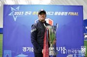 한국탑뉴스 유용식 기자 | 왕중왕전 득점왕을 차지하며 팀의 우승을 이끈 수원삼성U15 안주완이 프로 선수가 된 후 슈퍼매치에 뛰고 싶다고 밝혔다. 수원삼성U15는 22일 오전 경주스마트에어돔에서 펼쳐진 2023 전국중등축구리그 왕중왕전 결승전에서 FC서울U15를 5-1로 꺾고 우승을 차지했다. 왼쪽 측면 공격수로 선발 출전한 안주완은 해트트릭을 기록하며 우승을 이끌었다. 안주완은 전반 종료 직전 팽팽했던 균형을 깨트렸다. 전반 34분 이지호에게 패스를 받은 안주완의 오른발 슈팅은 그대로 골문으로 들어갔다. 후반에도 2골을 몰아치며 해트트릭을 완성했고, 이번 대회 6경기 7득점으로 득점왕을 수상하게 됐다. 이종찬 감독은 안주완에 대해 “아직 2학년으로 성장하는 단계이기 때문에 더 발전 가능성이 있는 선수다. 오늘의 해트트릭에 만족하지 않고 한 단계 더 발전해 나가는 선수가 됐으면 좋겠다”고 말했다. 안주완은 올해 중등리그 K리그 주니어A에서도 22골을 넣으며 득점왕에 올랐다. 경기 후 만난 안주완은 “지난해 왕중왕전 준결승, 올해 8월 K리그 유스 챔피언십 4강에서 FC서울U15에게 모두 졌다. 오늘