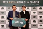 한국탑뉴스 유용식 기자 | 윤병찬(14.A)이 ‘2023 KPGA 회장배 주니어 선수권대회 Sponsored by Titleist’서 우승컵을 들어올렸다. 본 대회는 전북 군산 소재 군산CC 전주, 익산 코스(파72. 7,106야드)에서 16일부터 17일까지 2라운드 36홀 경기로 열릴 예정이었으나 16일 폭우로 인한 기상 악화로 1라운드 18홀 경기로 축소 운영됐다. 이에 1라운드에서 보기 없이 버디만 6개를 잡아내며 6언더파 66타를 기록한 윤병찬이 정상에 등극했다. 경기 후 윤병찬은 “우승컵을 들어올릴 수 있어 매우 감격스럽다. 이번 우승이 자신감을 찾고 좋은 선수로 성장하는데 큰 경험이 될 것”이라며 “대회를 준비해주신 타이틀리스트 임직원 분들과 대회 관계자분들, 골프를 가르쳐 주시고 계신 김태훈 프로님, 가족들에게 고마움을 전한다”고 밝혔다. 현재 서울 엘리트 오픈 스쿨 9학년에 재학중인 윤병찬은 본인의 장점으로 아이언샷을 꼽았다. 그는 “핀 근처에 붙이는 아이언샷이 내 장점이지만 쇼트게임의 전체적인 능력을 좀 더 보완해야 한다고 생각한다”며 “KPGA 코리안투어에서 강력한 스