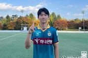 불탑뉴스 유용식 기자 | K4리그(4부) 대전하나시티즌 B팀에서 뛰고 있는 2004년생 공격수 유선우(19)는 하루 빨리 1부 경기에 데뷔해 대전월드컵경기장을 밟고 싶다는 바람을 드러냈다. 대전하나 B팀은 지난달 28일 전주대인조구장에서 펼져진 2023 K4리그 32라운드에서 전주시민축구단을 상대로 1-1로 비겼다. 이날 선발로 출전한 유선우는 0-1로 뒤지고 있던 전반 41분 만회골에 성공하며 승부를 원점으로 돌렸다. 경기 후 만난 유선우는 “승점 3점을 따지 못한 게 많이 아쉽다”면서도 “전주 원정에서 소중한 승점 1점을 가져갈 수 있는 것에 만족하고 기쁘다”는 경기 소감을 밝혔다. 이어 골 상황에 대해선 ”중앙에서 (임)유석이 형이 볼을 치고 가다가 내게 패스를 넣어줬다. 잘 돌아서서 빠른 템포에 슈팅해 득점까지 잘 연결된 것 같다“고 돌아봤다. 이 골은 유선우의 성인 무대 데뷔골이기도 했다. 이에 대해 유선우는 ”시즌 초반 부상으로 인해 오래 쉬다가 최근에 복귀했는데 득점에도 성공하고 몸상태도 많이 올라왔다고 느꼈다. 개인적으로 소중한 경기로 남을 것 같다“는 소감을 전했다. 유선우는 충남기