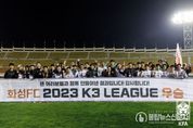 불탑뉴스 유용식 기자 | 강철 감독이 이끄는 화성FC가 2023 K3리그 챔피언이 됐다. 화성FC는 3일 오후 7시 창원종합운동장에서 열린 창원시청과의 K3리그 29라운드 원정경기에서 2-1로 승리했다. 이로써 화성은 2위 FC목포와의 승점차를 7점으로 벌리며 남은 한 경기 결과에 관계없이 2023 K3리그 우승을 확정지었다. 화성FC의 우승은 경기 직전 이미 결정됐다. 화성에 승점 4점이 뒤진 2위 FC목포가 화성FC를 따라잡기 위해 반드시 승리가 필요했으나, 오후 3시에 먼저 치러진 대전코레일 원정경기에서 1-3 역전패를 당했기 때문이다. 화성FC는 전반 11분 코너킥 상황에서 나온 샌디의 선제골에 이어, 후반 38분 장영우의 어시스트를 받은 루안이 추가골까지 기록했다. 지난해 K3리그 우승팀 창원시청은 후반 추가시간 태현찬의 만회골로 추격했으나 승부를 뒤집지는 못했다. 2023년 K3리그는 15팀이 참가해 홈 앤드 어웨이 방식으로 연중리그를 치르고, 정규리그 성적만으로 최종 순위를 가렸다. 화성FC는 시즌 초반 17경기 무패 행진을 달리며 상승세를 탔고 27경기를 치른 29라운드 현재 16승