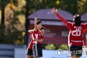불탑뉴스 유용식 기자 | 경희대 KH LIONS가 2023 렛츠플레이 여대생축구클럽리그(이하 우플) 우승의 영예를 안았다. KH LIONS는 28일 오후 파주NFC 새싹구장에서 펼쳐진 우플 챔피언십 결승전에서 대학 연합팀 FC GPS를 2-1로 이겼다. 대회 우승팀에게는 상금 200만원이 주어졌다. 2위 FC GPS, 3위 제주대 제대로, 4위 이화여대 ESSA에게도 각각 100만원, 50만원, 30만원이 전달됐다. 최우수선수(MVP)와 득점왕은 KH LIONS의 한혜서와 강서연이 각각 차지했다. 두 선수에게는 각각 상금 20만원과 대표팀 유니폼이 수여됐다. 정규리그 1위(12승 1무)로 리그 4위까지 나서는 챔피언십에 진출한 KH LIONS는 21일 준결승전에서 지난해 준우승 팀인 이화여대 ESSA에 3-2 승리를 기록했고, 이날 결승전에서 FC GPS를 상대로 극적인 승리를 거두며 우승의 기쁨을 누렸다. 반면 FC GPS는 2022 U-20 여자 월드컵에서 활약했던 대전대덕대 여자축구부 김민지를 앞세워 승리를 노렸으나 KH LIONS의 기세를 꺾지 못했다. 킥오프 시작 직후, KH LIONS의