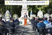 ㈜한국탑뉴스 차복원 기자 | 자유민주주의를 수호하다 희생된 영령들의 넋을 기리는 제45회 합동위령제가 24일 정읍 내장산 향토자유수호기념비 앞에서 엄수됐다. 한국자유총연맹 정읍시지회 주관으로 열린 이날 위령제에는 유가족과 각계 인사 70여 명이 참석해 호국영령의 숭고한 헌신을 추모하고 안보 의식을 다졌다. 이날 위령제에는 이학수 시장·박일 시의회 의장·최용훈 정읍교육지원청 교육장·박상훈 정읍경찰서장을 비롯한 기관단체장과 자유수호 희생자 유가족, 연맹 회원 등 70여 명이 참석해 희생자들의 넋을 기렸다. 행사는 엄숙한 분위기 속에서 경과보고·종교의식·조시낭독·추념사·추도사 등의 순서로 진행됐다. 심정술 회장은 추념사에서 “자유수호를 위해 희생하신 호국영령의 뜻을 가슴 깊이 되새기며 자유 민주주의를 지켜 나가겠다”고 말했다. 이학수 시장은 추도사를 통해 “우리가 누리는 자유와 번영은 호국영령들의 희생과 헌신 위에 세워진 결실”이라며 “위령제가 호국영령의 숭고한 정신을 되새기고 안보의식을 다지는 뜻깊은 시간이 되기를 바란다”고 전했다. 한편, 한국자유총연맹 정읍시지회는 매년 10