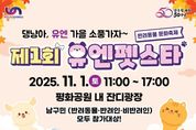 ㈜한국탑뉴스 차복원 기자 | 부산광역시 남구는 오는 11월 1일, 구 개청 50주년을 기념해 평화공원 내 잔디광장에서 '제1회 유엔펫스타(Pet Star, 반려동물 문화축제'를 개최한다고 밝혔다. 이번 축제는 반려동물과 반려인, 그리고 비반려인 모두가 함께 어울리며 반려 문화에 대한 인식을 개선하고, 올바른 반려동물 문화 정착을 도모하기 위해 마련됐다. 행사는 11시부터 오후 5시까지 진행되며, 남구민 누구나 참여할 수 있는 다채로운 프로그램이 운영된다. 개막식을 시작으로 반려동물과 함께하는 △반려동물과 함께하는 플로깅 ‘유엔펫로깅’(사전등록 필요) △반려동물 문화교실 ‘펫티켓토크’△반려동물 퀴즈대결 ‘댕퀴즈 온더유엔’ △어질리티 경주 및 기다려 대회로 구성된 ‘댕냥이 가을운동회’ 등이 펼쳐질 예정이다. 또한 행사장 내에는 포토존, 유엔펫 상담소(댕냥병원 · 동물등록), 펫타로 체험, 양말목 키링·허브볼 만들기 체험부스 등 가족 단위 참가자들이 즐길 수 있는 다양한 체험 공간도 마련된다. 참여자는 반려동물의 목줄을 반드시 착용하고 배변 봉투를 지참해야 하며, 주차 공간이 협소하므로 대중