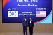 ㈜한국탑뉴스 차복원 기자 | 아산시는 24일 글로벌 첨단 유리소재 선도기업인 코닝정밀소재㈜를 방문해 임직원들과 간담회를 갖고 지역경제 활성화와 상생협력 방안을 논의했다고 밝혔다. 이번 방문은 코닝정밀소재의 생산 현장을 직접 둘러보고, 최근 디스플레이 산업의 기술 변화와 기업 애로사항을 청취하며 지역 산업 생태계와 연계한 협력 방안 및 지역경제 회복 방향을 모색하기 위해 마련됐다. 간담회에는 오세현 시장을 비롯해 이재성 기획경제국장 등 시 관계자와 반 홀(Vaughn M. Hall Jr.) 코닝정밀소재 대표이사와 임원진 등 20여 명이 참석했다. 양측은 △코닝의 첨단 건축용 유리제품 공공건축물 적용 △아산시 관내 기업 이용 및 청년 현장견학 프로그램 운영 △아산페이 더블혜택 이벤트 홍보 △지역 농산물 이용 등 다양한 상생 협력 과제에 대해 의견을 교환했다. 이 자리에서 오 시장은 “디스플레이 산업은 초고해상도, 대형화, 폴더블 등 기술 패러다임이 빠르게 전환되고 있으며, 그 중심에 코닝의 초박막‧고기능성 유리 기술이 있다”고 평가했다. 특히 “코닝정밀소재는 아산의 미래산업을 함께 설계하는