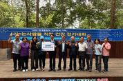 ㈜한국탑뉴스 한기석 기자 | (사)나누는 사람들가 지역사회 독거노인 지원을 위한 나눔 프로젝트인 ‘전주함께미(米)소(笑)’에 동참했다. (사)나누는 사람들은 19일 건지산 오송제 일대에서 9개 산하기관 임직원 100여 명이 참여한 가운데 ‘직원 건강 걷기대회’ 행사를 개최했다. 이번 건강걷기대회는 (사)나누는 사람들이 몸과 마음이 건강한 법인으로 나아가기 위해 마련된 행사로, 참석한 임직원들은 걷기운동과 건지산 진입로 줍깅, 환경보호활동, 미니올림픽 등을 진행했다. 특히 참여한 임직원들은 전주 하계올림픽 유치를 기원하는 퍼포먼스를 펼치기도 했다. 이와 함께 (사)나누는 사람들은 우범기 전주시장, 이순태 나누는 사람들 대표이사, 최재훈 전주시노인복지관연합회장 등이 참석한 가운데 전주지역 독거노인 지원을 위한 나눔 프로젝트인 ‘전주함께미(米)소(笑)’ 기부금 전달식을 가졌다. 이 자리에서 (사)나누는 사람들 임직원들은 나눔 문화 확산을 위한 프로젝트에 적극 동참하겠다는 의지를 담아 모은 현금 300만 원을 전주시에 전달했다. 전달된 기부금은 전주지역 7개 노인복지관에서 모금된