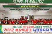 ㈜한국탑뉴스 한기석 기자 | 진안군은 19일 오후 군청 강당에서 ‘2025 진안홍삼축제 자원봉사자 발대식’을 열고 본격적인 활동에 들어갔다. 이날 발대식에는 전춘성 진안군수와 이재동 (사)진안군자원봉사센터 이사장을 비롯해 성인·청소년 자원봉사자 150여명이 참석했다. 행사에서는 자원봉사자가 직접 제작한 진안홍삼축제 홍보 릴스영상 상영, 자원봉사자 결의문 낭독, 자원봉사자 교육 등이 진행돼 축제 준비의 열기를 더했다. 이번 발대식은 축제를 성공적으로 이끌어갈 자원봉사자들이 한자리에 모여 사기를 높이고 각오를 다지는 자리로, 축제 분위기를 한층 고조시켰다. ‘홍삼특공대’ 자원봉사단은 성인과 청소년 150여명으로 꾸려져 축제 기간 동안 체험부스 운영, 교통 안내, 환경 정비, 방문객 환영 등 다양한 분야에서 활동한다. 단순 지원을 넘어 진안의 얼굴이자 홍보대사 역할을 수행할 예정이다. 전춘성 군수는 “진안홍삼축제는 자원봉사자 한 분 한 분의 땀과 헌신으로 완성된다”며 “여러분의 활약이 관광객에게 감동과 좋은 기억으로 남을 것”이라고 말했다. 이재동 이사장은 “봉사는 작은 수고가 모여 큰 변화