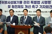 ㈜한국탑뉴스 한기석 기자 | 심덕섭 고창군수가 18일 오전 전북특별자치도 도의회 브리핑룸에서 열린 전국원전인근지역동맹 행정협의회 공동 기자회견에 참여해 “시행을 앞둔 고준위핵폐기물 임시저장시설 설치를 골자로 한 ‘특별법 시행령’에 깊은 유감을 표하며 원전과 관련된 불합리한 법령 및 제도를 개선할 것”을 촉구했다. 기자회견에는 심덕섭 고창군수와 권익현 부안군수(원전동맹 협의회장)가 함께 참여해 지역 주민들의 목소리를 대변했다. 앞서 정부는 지난 16일 국무회의에서 ‘고준위 방사성폐기물 관리시설’ 부지 선정 등을 골자로 한 ‘고준위 방사성폐기물 관리에 관한 특별법’ 시행령과 ‘고준위 방사성폐기물 관리위원회' 직제 시행령’을 의결했다. 이에 전국원전지역동맹은 “폐기물 임시저장시설을 짓는데 주민동의 등 실질적인 주민수용성 절차가 반영되지 않았으며, 임시저장시설의 영구화를 초래할 위험이 크다”고 일제히 반발했다. 심덕섭 고창군수는 “해당 법령에서 ‘주변지역’을 저장시설 반경 5㎞로 한정한 것은 핵발전소와 동일한 위험에 노출되어 있는 인근 지역주민들의 안전을 심각하게 침해하는 불합리한 기준이다”고 성토했다.