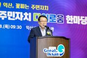 ㈜한국탑뉴스 한기석 기자 | 익산시가 주민자치 활성화와 공동체 화합을 다지는 축제의 장을 마련했다. 익산시는 18일 실내체육관에서 주민자치협의회와 함께 '제10회 익산시 주민자치 다이로움 한마당'을 개최했다. 올해 행사는 '하나된 익산, 꽃피는 주민자치'라는 주제 아래 △주민자치 발전 유공자 표창 △주민자치 프로그램 발표회 △작품전시회 △명랑운동회 △주민자치 활동 사진전 등 다채로운 프로그램으로 꾸며졌다. 이날 행사에는 주민자치위원과 시민 등 1,000여 명이 함께하며, 지역 공동체의 힘과 화합을 보였다. 개회식은 지난해 익산시 주민자치 프로그램 경연대회 우승팀인 '함열읍 풍물단'의 식전공연으로 막을 올렸다. 이어 주민자치 발전에 기여한 유공자들에게 표창이 수여돼 주민자치 활동의 성과를 되새겼다. 주민자치센터 프로그램 발표회에서는 풍물, 댄스, 악기연주 등 다양한 분야의 26개 참가팀이 무대를 꾸며 관람객들의 뜨거운 호응을 얻었다. 2부 행사는 주민 모두가 즐길 수 있는 명랑운동회와 재능기부 공연이 열려 흥겨운 분위기를 더했으며, 6개 읍·면·동에서 출품한 서예·문인화·캘
