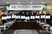 ㈜한국탑뉴스 한기석 기자 | 장수군은 27일 군청 2층 회의실에서 전북특별자치도 농생명산업지구로 지정된 ‘저탄소한우 산업지구’의 성공적인 조성과 활성화를 위해 관계기관‧단체와 업무협약(MOU)을 체결했다. 이날 협약식에는 최훈식 장수군수를 비롯해 장수한우지방공사, 전북대학교, 장수·장계농협, 무진장축협, 전국한우협회 장수군지부, 장수군유통사업단, ㈜이티바이오텍, ㈜복수 등 10개 기관·단체 대표가 참석해 협약기관 간 상호 업무체계를 구축했다. 이번 협약에 따라 장수군은 사업 총괄과 정책 지원을 담당하고 전북대학교·무진장축협·장수한우지방공사·㈜이티바이오텍은 저메탄 종축 및 사양관리 기술개발과 현장 실증을 추진한다. 또한 ㈜복수는 저탄소 기반 도축·가공 시스템을 구축하고 장수·장계농협과 장수군유통사업단은 ‘장수 저탄소 한우’ 브랜드 홍보와 판로 확대에 나선다. 여기에 전국한우협회 장수군지부는 생산자 조직으로서 농가 참여 확대와 현장 의견 수렴, 사업 확산을 위한 협력체계를 강화하고자 한다. 장수군은 이번 협약 참여기관 간 실무협의회를 구성해 데이터 공유와 탄소 감축 가이드라인 준수, 공동