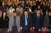 ㈜한국탑뉴스 한기석 기자 | 전라남도는 1일 도청 김대중강당에서 제107주년 3·1절 기념식을 개최해 조국 독립을 위해 헌신한 선열의 숭고한 뜻을 기리고, 3·1운동의 하나 된 정신을 바탕으로 전남·광주 통합과 미래 도약 의지를 다졌다. ‘독립을 향한 열망, 하나 된 호남인, 지켜낸 조국’을 주제로 진행된 이날 기념식에는 김영록 전남도지사와 독립유공자 유족, 광복회원, 보훈단체, 기관·단체장 등 900여 명이 참석해 민족 자주독립의 의미를 되새겼다. 기념식은 3·1운동 경과보고, 독립선언서 낭독, 유공자 표창, 기념사, 기념공연, 3·1절 노래 제창, 만세삼창 순으로 진행됐다. 독립선언서 낭독은 독립유공자 후손과 3·1운동 참여학교인 목포 정명여고와 영흥고 대표 재학생이 함께해 독립 정신의 의미를 되새겼다. 특히 ‘그날의 외침, 하나 된 호남인’을 주제로 한 공연은 광주학생항일운동을 배경으로 하나 돼 일제에 맞선 호남인을 표현, 전남·광주인이 같이 미래로 나아가자는 통합 메시지를 전달해 참석자들에게 깊은 감동을 전했다. 도청 1층 윤선도홀에서는 한국독립운동사와 항일 예술을 조명하는 사진