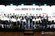 ㈜한국탑뉴스 한민석 기자 | 화성특례시는 1일 화성시독립운동기념관 강당에서 제107주년 3·1절 기념식을 개최했다. 기념식에는 정명근 화성특례시장, 배정수 화성특례시의회 의장, 윤대성 광복회 화성시지회장, 국회의원, 도·시의원, 지역 주민 등이 참석해 순국선열과 애국지사들의 숭고한 희생을 기리는 시간을 가졌다. 기념식은 ▲국민의례 ▲내빈 소개 ▲3·1절 기념 영상 상영 ▲독립선언서 낭독 ▲기념사 ▲3·1절 기념 무용극 ▲3·1절 노래 제창 및 만세삼창 순으로 진행됐다. 특히 3·1절 기념 무용극에서는 서울예술대학교 무용과 학생들이 ‘그날을 위하여’를 선보이며 민중의 용기와 연대의 정신을 표현했다. 행사장 로비에서는 ▲태극기 틈새 전시가 열려 독립운동 정신을 상징하는 다양한 형태의 태극기가 소개됐다. 또한 기획전시실에는 ▲태극기 포일아트 머리띠 ▲태극기 바람개비 등 다양한 체험 프로그램이 마련됐으며, 교육실에서는 ▲만세도장만들기 프로그램이 운영돼 나만의 수제 도장을 제작하는 시간을 가졌다. 참가자들은 다양한 체험을 통해 선열들의 희생과 민족의 자주 의지를 되새겼다. 정명근 화성특례시장은 “3·1운동은
