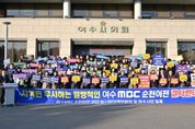 ㈜한국탑뉴스 차복원 기자 | 여수MBC 순천이전을 저지하기 위한 여수시민들의 외침이 도심 한가운데 울려 퍼졌다. 15일 여수시에 따르면, 이날 오후 3시 여수시와 여수시의회, 시민사회단체로 구성된 ‘여수MBC 순천이전 반대 범시민대책위원회’는 시의회 청사 1층 공감뜨락에서 ‘여수MBC 지키기! 대시민 토론회 및 결의대회’를 가졌다. 이날 대회는 범대위 공동위원장인 여수시장과 시의장, 범대위 회원을 비롯해 시민과 시의원 등 3백여 명이 참석한 가운데, 1부 대시민토론회와 2부 결의대회 순으로 진행됐다. 이들은 결의문에서 “시민 의견을 배제하고 공론화 과정 없이 일방적으로 추진한 여수MBC 순천이전을 즉각 중단하라”며, “이전 계획을 철회하고 공영방송의 책무를 다하라”고 촉구했다. 정기명 시장도 “여수MBC는 지금이라도 시민들께 사죄하고 대화에 나서라”며, “대화를 통해 시민적 합의만 이뤄진다면 시는 어떠한 제안도 수용할 준비가 되어있는 만큼 이 위기를 함께 헤쳐 나가자”고 밝혔다. 한편, 참석자들은 행사를 통해 결의를 다지고, 여수시의회를 출발해 KB국민은행과 (구)송원백화점, 해양경찰서