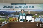 ㈜한국탑뉴스 송행임 기자 | 봉화군과 봉화군공무직근로자 노사 양측 각각 4명의 위원이 참석한 가운데 3월 26일 군청 소회의실에서 2026년도 노사협의회를 가졌다. 이번 노사협의회는 노사 간의 소통을 강화하고, 공무직 근로자들의 근무 환경을 개선하여 더 나은 대군민 행정 서비스를 구현하기 위해 마련됐다. 특히, 이번 회의에는 지난 1월 공무직 근로자 측이 제시한 ‘공무직 근로자 임신검진 동행휴가 신설 등’에 대해 심도 있게 논의하여 합의를 도출했다. 박현국 군수는 “근로자가 행복해야 군민에게도 더 나은 행정 서비스를 제공할 수 있다”라며, “이번 협의회에서 도출된 결과가 실질적인 복지 향상으로 이어질 수 있도록 제반 여건 마련에 최선을 다하겠다”라고 말했다. 전종국 위원장도 “노사가 서로의 입장을 이해하고 존중하는 노력이 봉화군의 밝은 미래를 만든다”며, “노사가 함께 성장하고 화합하는 건강한 조직문화를 만드는 데 앞장 서겠다.”라고 화답했다.
