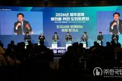 ㈜한국탑뉴스 차복원 기자 | 제주특별자치도가 제주경제의 회복 흐름을 지속가능한 성장으로 이어가기 위해 도민과 소통하고 공감을 구하는 토론회를 개최했다. 제주도와 제주상공회의소는 9일 오후 2시 한라컨벤션센터에서 ‘2026년 제주경제 발전을 위한 도민토론회’를 열었다. 토론회에는 상공인과 도민 등 250여 명이 참석했으며, 기조발표와 경제토크쇼, 도민과의 대화가 진행됐다. 양문석 제주상공회의소 회장은 개회사에서 “산업 환경 변화와 기후위기라는 국면 속에서 제주 경제의 구조와 방향을 근본적으로 재점검해야 하는 중요한 시점”이라며 "전문가들의 분석과 현장 목소리가 결합해 제주 경제의 미래 방향을 구체화하는 의미 있는 논의의 장이 되기를 기대한다”고 말했다. 오영훈 지사는 최근 제주경제 회복 흐름을 구체적으로 설명하며 “1월 관광객 전년 동기 대비 증가, 지난해 첫 수출 3억 달러 달성을 비롯해 최근 미국산 만다린 수입 우려에 대응한 수급조절 정책이 효과를 보이면서 가격이 상승해 안정세를 되찾았다”고 밝혔다. 그러나 “건설업 부진과 소상공인·자영업자의 어려움은 여전히 풀어야 할 과제”라며 “명