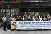 ㈜한국탑뉴스 송행임 기자 | 청주시의회 대표단는 13일 베트남 하노이에 위치한 K-마켓 사파이어점을 방문하여 충북 농식품 안테나숍을 둘러보고, 청주시 농식품의 현지 반응을 살피며 새로운 수출 판로 확대 방안을 논의했다. 이어 K-마켓 본사를 방문해 문종범 사장, 이상윤 사장 등 경영진과 만나 청주 농식품의 베트남 시장 진출 확대를 위한 구체적인 협력방안을 심도있게 협의했다. K-마켓 내 충북 농식품 안테나숍에는 도내 다양한 농식품이 입점해 있으며, 청주시 소재 기업 제품은 4개사 15개 품목에 달한다. 청주시의회는 이번 방문을 통해 실제 판매 현장을 확인하고 베트남 소비자들이 청주 농식품에 대해 어떤 인식을 가지고 있는지 면밀히 살폈다. 본사 간담회에서는 청주 농식품의 경쟁력과 베트남 시장 내 성장 가능성을 검토하고 수출 과정에서 발생하는 행정·유통 등의 애로사항을 청취했다. 또, 청주시의회는 청주시 차원의 행정 지원 강화와 마케팅·홍보 확대, 그리고 신규 시장 발굴을 위한 실질적 협력체계 마련을 제안하며, 청주 농식품의 해외 진출 기반을 한층 공고히 하겠다는 의지를 밝혔다. 아울러 1
