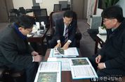 ㈜한국탑뉴스 송행임 기자 | 우범기 전주시장이 미래 성장동력 확보와 지역 핵심 현안을 풀어내기 위해 정치권과 밀착 소통을 이어가고 있다. 우 시장은 28일 국회를 방문해 정동영 통일부 장관(더불어민주당, 전주 병)에게 전주시가 대한민국을 넘어 세계적인 도시로 도약하기 위한 핵심 현안을 설명하고, 정치권의 지원과 협력을 요청했다. 이날 우 시장은 정동영 장관과 국가전략사업인 피지컬AI 사업의 ‘전북’ 지정에 따라 산업·실증 인프라가 집중된 전주에 피지컬AI 생태계 조성사업의 유치 방안을 집중 논의했다. 또 전주의 첫 관문에서 ’책의 도시 전주‘ 이미지를 이용객에 전달하고 전주 도서관여행과 연계방안을 제안했다. 이를 위해 철도 연계 관광을 활성화시키기 위한 전주역사 ’서가가 있는 공간‘ 조성에 정치권의 적극적인 협조를 요청했다. 그 외 현 정부가 역점을 두고 추진 중인 ‘통합지방정부’에 대한 지원 기조에 발맞춰 시·도 통합에 상응하는 완주-전주 통합지원과 전주의 문화·체육 인프라를 전 세계에 알리고 도시의 격을 한 단계 높일 하계올림픽 전주 유치에 대해 협력 방안을 논의하기도 했다. 이와
