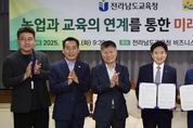 ㈜한국탑뉴스 고화랑 기자 | 전라남도교육청은 10월 14일 청사 5층 비지니스실에서 전라남도 농업기술원(원장 김행란)과 ‘농업과 교육의 연계를 통한 미래인재 육성 업무협약’을 체결했다. 이번 협약은 농업·농촌의 다양한 자원을 교육과 연계해 학생들이 체험 중심으로 배우고, 생태 감수성과 창의 역량을 키울 수 있도록 지원하기 위해 마련됐다. 이번 협약에 따라 양 기관은 ▲ 농촌교육농장과 치유 농장을 활용한 체험교육 확대 ▲ 늘봄학교 운영과 연계 가능한 프로그램 제공 ▲ 생태 기반 창의 교육, 진로, 창업 체험처 발굴 및 정보 제공 ▲ 지속가능한 농촌교육 모델 구축 등에 힘을 모으기로 했다. 양 기관은 협약 내용을 바탕으로, 각급 학교와 교육지원청이 쉽게 활용할 수 있는 프로그램을 발굴하고 현장 체험 중심 교육 자료를 개발할 예정이다. 또한 교원 연수와 교육공동체 협력 네트워크를 운영해 농업·농촌 자원을 효과적으로 교육 현장에 적용할 수 있도록 지원할 방침이다. 아울러, 농촌교육농장의 교육적 활용도를 높이고, 지역 농업과 연계한 미래형 교육 모델을 확산할 계획이다. 학생들은 이를