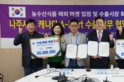 ㈜한국탑뉴스 차복원 기자 | 전라남도 나주시가 캐나다 현지 대형 유통업체와 손잡고 지역 농수산식품의 글로벌 수출 확대에 나섰다. 나주시는 지난 24일 전라남도 농업기술원에서 캐나다 A-Mart와 500만 달러 규모의 농수산식품 수출 업무협약(MOU)을 체결했다고 27일 밝혔다. 최병화 대표는 나주 출신으로 2007년 캐나다 캘거리에서 아시아 식품 전문 유통업체를 설립해 현재 3개 매장을 운영하고 있다. 이번 협약은 ‘2025 국제농업박람회’ 기간 중 진행됐으며 윤병태 나주시장과 최병화 대표, 나주 수출업체 골든힐 한문철 대표가 참석해 나주 농수산물의 캐나다 수출 확대와 상호 협력을 약속했다. 앞서 시는 토론토 팬아시아푸드와의 협약에 이어 두 번째 캐나다 진출 성과를 거뒀으며 올해 9월 기준 캐나다로 약 366톤의 농수산물을 수출했다. 이번 협약으로 미주 지역 내 나주 농수산식품의 수출 기반이 한층 강화될 것으로 기대된다. 윤병태 나주시장은 “이번 협약은 나주 농산물의 글로벌 경쟁력을 높이는 중요한 계기”라며 “해외 판로를 다각화해 지역 농가의 실질적인 소득 증가로 이어지도록