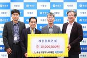 ㈜한국탑뉴스 차복원 기자 | 대전 유성구는 세종종합건재가 유성구 행복누리재단에 후원금 1,000만 원을 기탁했다고 4일 밝혔다. 기탁된 후원금은 노인대학의 문화예술 공연 지원사업 등 노인 여가 활동 프로그램 지원을 위해 활용될 예정이다. 김병철 대표는 “이번 후원금이 지역 어르신들이 활기차고 건강한 노년을 보내는 데 도움이 되길 바란다”라며 “앞으로도 지역사회와 함께하는 나눔 활동을 이어가겠다”라고 말했다. 정용래 유성구청장은 “세종종합건재의 지속적인 나눔 실천에 감사드린다”라며 “앞으로도 어르신들의 삶의 질 향상을 위해 민관이 함께 노력하겠다”라고 말했다. 세종종합건재는 지난 2021년부터 KF94 마스크 1만 매와 후원금 1,500만 원 등을 기탁하며 지역 복지 향상을 위해 사회공헌 활동을 이어오고 있다.