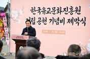 ㈜한국탑뉴스 송행임 기자 | 논산시는 26일 노성면에 위치한 한국유교문화진흥원에서 ‘기념비 제막식’을 개최했다. 제막식에는 조관행 노성면 어르신회장을 비롯해 백성현 논산시장, 조용훈 논산시의회의장 및 시 의원, 관내 유관기관과 단체 관계자 등 200여 명이 참석했다. 백성현 논산시장은 “이 세상은 누군가의 희생과 헌신의 씨앗으로 피어나는 꽃과 같다”며 “민족의 얼을 길이 보전하기 위해 큰 결심을 해 주신 종중 어르신들께 깊은 감사의 인사를 드린다”고 말했다. 이어 “전 세계적으로 유학에 대한 관심이 높아지고 있는 만큼, 한국유교문화진흥원은 논산의 뿌리깊은 유교 문화와 정신을 널리 전파하는 중심 역할을 하게 될 것”이라며 “문화, 경제, 농업, 국방 등 모든 분야에서 논산의 가치를 높이기 위해 실천하는 행정을 펼쳐 나가겠다”고 말했다. 지난 2022년 개관한 한국유교문화진흥원은 한국유교문화와 충청지역 국학의 대표적인 연구기관이다. 건립 과정에서 파평윤씨노성대종중은 약 2만 평의 토지를 기부하며 논산이 지닌 유교적 가치와 정신을 후대에 온전히 계승하고 지역 문화의 뿌리를 굳건히 세울 수 있도록 하는 데