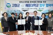 ㈜한국탑뉴스 송행임 기자 | 고창군은 지난 13일 세종대학교(총장 엄종화)와 지역 내 문화소외계층의 문화접근성 향상과 문화향유 기회 확대를 위해 업무협약을 체결했다. 이날 협약식에는 고창군수, 세종대학교 인문-IT 융합연구원 김수연 원장, 인문대학 이경랑 학장, 고창군가족센터 정혜숙 센터장 등 기관 관계자들이 참석했다. 이번 협약으로 세종대학교는 AI 기반 문화교육 프로그램을 개발하고 고창군에 문화체험 콘텐츠를 제공한다. 특히, 다문화가정이 지역에 정착할 수 있게 언어 장벽을 해소할 수 있는 모듈형 공간을 마련하여 맞춤형 문화서비스를 지원할 예정이다. 또한 양 기관은 지원 대상을 점진적으로 확대해 다양한 문화소외계층이 문화 활동을 폭넓게 접할 수 있도록 프로그램을 지원해 나갈 방침이다. 고창군수는 “이번 협약은 문화소외계층의 문화 접근성을 높이고 지역사회 문화복지를 한 단계 확대하는 의미 있는 출발점이 될 것”이라며 “앞으로도 다양한 기관과의 협력을 통해 군민 누구나 문화적 가치를 누릴 수 있는 포용적 문화환경 조성에 힘쓰겠다”고 밝혔다.