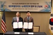 ㈜한국탑뉴스 차복원 기자 | 제주특별자치도가 미국 동부 50만 한인을 대표하는 뉴욕한인회와 손잡고 경제·관광·문화·교육 분야 글로벌 협력 네트워크를 본격 가동한다. 제주도는 19일 오후 4시(현지시간) 미국 워싱턴DC 소재 하얏트 플레이스 호텔에서 뉴욕한인회와 상생 교류발전 업무협약을 체결했다. 뉴욕한인회는 뉴욕 대도시권과 뉴저지, 코네티컷 일부 지역 약 50만 한인을 대표하는 비영리단체로 한인 권익보호와 문화·경제·교육·복지사업, 이민자 지원 등을 담당한다. 제주도가 미주지역 한인회와 협약을 맺은 것은 지난해 10월 미주한인회총연합회에 이어 두 번째다. 협약식에는 오영훈 지사와 이명석 뉴욕한인회장을 비롯한 양측 관계자 20여 명이 참석해 다양한 분야에 대한 구체적인 협력방안을 논의했다. 주요 내용은 △제주형 휴가지 원격근무(워케이션)·배움여행(런케이션) 프로그램 홍보 및 참여 촉진 △관광·지역경제 활성화를 위한 네트워크 협력 사업 △협약기관 간 지속가능한 공동체 발전 및 상생 기반 마련 등이다. 오영훈 지사는 “뉴욕한인회와의 업무협약은 한인사회 발전과 고국 연결을 강화하는