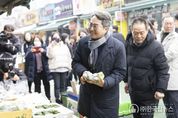 ㈜한국탑뉴스 차복원 기자 | 김동연 경기도지사가 경기도 지원으로 폭설 피해 복구 작업이 진행 중인 의왕 도깨비시장을 찾아 상인들을 격려했다. 2024년 11월 의왕 도깨비시장이 폭설 피해를 당한 후 세 번째 방문이다. 15일 27번째 민생경제 현장투어(달달버스-달려간 곳마다 달라집니다)차 의왕시를 찾은 김동연 지사는 도깨비시장 피해복구 공사 진행 상황과 설을 앞둔 시장 물가 동향 등을 점검하며 시장 상인들과 대화를 나눴다. 김동연 지사는 박용술 도깨비시장 상인회장을 만난 자리에서 “잘 계셨냐? 재작년 폭설 오고 계속 눈에 밟혀서 어떠신가 해서..”라며 안부를 전한 후 “아무 걱정 안 하시게 (설치 구조물을) 만들 테니까 안심하시라. 공사를 빨리하려고 했는데 설 대목 때문에 늦췄다. 설 대목 장사 잘하시고 끝나면 신속하게 진행하겠다”고 상인들을 안심시켰다. 이에 대해 박용술 회장은 “(공사)진전이 엄청 빨리 되고 있다”면서 “작년에 사업 지원을 받아 주차장 하자 부분도 싹 다시 수리를 받았다. 아주 잘 쓰고 있다. 하나하나 진짜 감사드린다”고 말했다. 구윤자 상인부회장도 “자주 와주셔서 이제 눈물이