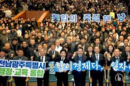 ㈜한국탑뉴스 송행임 기자 | 김영록 전라남도지사가 전남·광주 행정통합에 대한 도민 의견을 폭넓게 수렴해 특별법에 반영하기 위해 29일 완도군·해남군·진도군을 찾아 도민공청회를 개최하는 등 연일 도민과의 현장 소통에 강행군을 펼치고 있다. 김영록 지사는 이날 하루에만 서남권 3개 시군을 잇따라 방문한 것을 비롯해 30일까지 이번 1주일 새 무려 11개 시군을 순회하며 도민을 대상으로 전남·광주 행정통합 추진 배경과 정책 방향을 직접 설명하고, 첨단산업·재생에너지·해양·농수산업·관광·정주여건 등 지역 주요 현안에 대한 의견을 꼼꼼히 챙기고 있다. 앞서 지난주까지 5개 시군에서 일정을 소화했고, 오는 2월 3일까지 남은 6개 시군을 모두 돌면서 22개 전체 시군 다양한 계층의 도민 의견을 귀담아 들을 계획이다. 이후 추가로 권역별로 찾아가는 타운홀미팅도 이어갈 예정이다. 김영록 지사는 이날 서남권 3개 군 공청회에서 “해남·진도·완도는 농수산업과 해양관광을 기반으로 재생에너지·해양치유·AI·데이터센터 등 전남의 미래비전을 현실화할 성장 잠재력이 큰 지역”이라며 “행정통합을 통해 첨단산업과 해양·농수산 경쟁력을 강화하