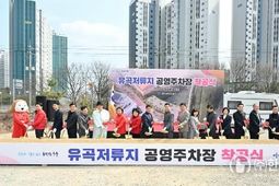㈜한국탑뉴스 송행임 기자 | 울산 중구가 3월 16일 오후 2시 유곡저류지(유곡동 265-2번지) 일원에서 ‘유곡저류지 공영주차장 착공식’을 개최했다. 이번 행사는 김영길 중구청장과 박경흠 중구의회 의장, 박성민 국회의원, 이성룡 울산시의회 의장, 시·구의원, 지역 주민 등 250여 명이 참석한 가운데 △경과보고 △기념사 △축사 △시삽 △기념 촬영 순으로 진행됐다. 중구는 앞서 지난해 5월부터 7월까지 지반조사를 하고 11월 도시관리계획(공원조성계획) 결정(변경)을 완료했다. 이어서 오는 7월까지 구비 9억 원을 들여 유곡저류지 1,297㎡ 부지에 40면(일반 36면, 친환경차 3면, 장애인 1면) 규모의 공영주차장을 조성하고 주차관제 시스템을 설치할 예정이다. 중구는 교통혼잡을 방지하고 부지 매입비를 절약하기 위해 당초 유곡저류지 바닥을 활용해 주차장을 만들 계획이었다. 하지만, 침수 위험 및 주차장 진출입 용이성 등을 종합적으로 고려해 바닥부를 활용하는 방식 대신 도로와 인접한 둑의 경사면에 흙을 쌓아 주차장 부지를 확보하는 방식으로 계획을 조정했다. 이와 함께 저류지