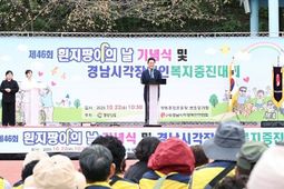 ㈜한국탑뉴스 송행임 기자 | 경남도는 22일 오전 창원스포츠파크 보조경기장에서 열린 ‘제46회 흰 지팡이의 날 기념식’에서 “흰 지팡이는 시각장애인의 자립과 성취, 평등한 사회 참여를 상징한다”며 “오늘이 더불어 살아가는 사회를 위해 흰 지팡이의 의미를 알리는 날이 되길 바라며, 시각장애인의 권익과 복지 증진에 힘쓰겠다”고 밝혔다. 이날 기념식은 (사)경상남도시각장애인연합회(회장 장상호) 주관으로 열렸으며, 도내 20개 시군 시각장애인연합회 지부 회원과 자원봉사자 등 1,000여 명이 참석해 시각장애인의 권익 신장과 자립 의지를 다지는 뜻깊은 시간을 가졌다. ‘흰 지팡이의 날’은 시각장애인의 권익 보호와 자립 의지를 기리기 위해 1980년 10월 15일 세계시각장애인연합회(WBU)가 공식 제정한 날이다. 이날 기념일의 상징인 ‘흰 지팡이’는 장애물의 위치와 지형 변화를 알려주는 도구로, 시각장애인의 자립과 성취를 상징한다. 단순한 이동 보조 수단을 넘어, 시각장애인이 세상과 소통하며 독립적으로 살아갈 수 있다는 희망의 의미를 담고 있다. 행사는 식전 공연을 시작으로 △흰지팡이 헌장 낭독 △유공자 표창 △장학금