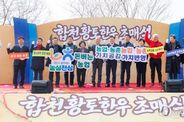 ㈜한국탑뉴스 송행임 기자 | 합천군은 합천축협과 함께 지역 대표 브랜드인 합천황토한우의 우수성을 알리고, 지역 한우산업 경쟁력 강화를 기원하고자 ‘합천황토한우 초매식’을 개최했다. 이번 초매식은 1월 29일 합천축협 스마트한우경매시장에서 열렸으며, 김윤철 합천군수, 정봉훈 합천군의장과 합천군의회 의원, 김용욱 합천축협 조합장, 김종배 전국한우협회합천군지부장과 한우 사육농가 등 약 100여 명이 참석해 행사의 의미를 더했다. 합천황토한우는 1999년 특허청 브랜드로 등록되어 합천군과 합천축협이 함께 운영하고 있는 한우 브랜드로, 16개월 이상 자체 사양관리 프로그램에 따라 합천축협이 생산하는 황토가 첨가된 전용 사료를 급여한 한우만을 출하하고 있으며, 부드러운 육질과 뛰어난 향미가 일품이다. 이번 초매식 개최지인 합천축협 스마트한우경매시장은 2021년 실시간 스마트 경매시스템을 도입하여 연간 9천두 이상의 한우를 경매하는 대규모 경매시장으로 매주 첫째주 목요일에는 큰소 경매를, 둘째 넷째주 목요일에는 송아지 경매를 실시하고 있으며, 이날 초매식에는 송아지 274마리가 출품되며 성황리에 진행됐다. 행사