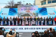 ㈜한국탑뉴스 차복원 기자 | 경주시는 감포읍의 최대 숙원사업이었던 ‘감포 중앙도시계획도로’ 개설사업을 완료하고 11일 준공식을 열었다. 감포읍민들의 오랜 요구에 따라 감포 소재지의 간선도로를 확장해 교통체계 개선과 주민 생활환경 향상, 지역 접근성 강화를 도모해 온 사업이다. 준공식에는 주낙영 경주시장을 비롯해 시의원, 감포읍 발전협의회·이장협의회·주민자치위원회 등 지역 단체장과 주민 300여 명이 참석했다. 행사는 감포읍 풍물단 공연을 시작으로 사업 경과보고, 감사패 전달, 버튼터치식, 기념촬영 순으로 진행됐다. 감포 중앙도시계획도로는 전촌사거리부터 오류해수욕장까지 이어지는 감포읍 중심 간선도로다. 시는 1995년부터 올해까지 총사업비 368억 원을 투입해 폭 15m, 총연장 3.97㎞의 도로 확·포장 공사를 단계적으로 추진해 왔다. 특히 마지막 남은 730m 구간(감포읍사무소~감포중·고교 삼거리)은 2022년 착공 이후 상수도관 설치, 가옥 13채 철거, 절개지 정비, 송태교 설치 등을 거쳐 올해 12월 포장을 완료하며 사업이 마무리됐다. 경주시는 이번 준공