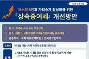 ㈜한국탑뉴스 차복원 기자 | “상속세, 기업의 족쇄 아닌 성장 엔진 돼야” 코스피 8,000 시대를 위한 뜨거운 설전 코스피 지수 8,000 시대와 원활한 기업 승계를 위해 우리나라 상속·증여세 제도를 근본적으로 뜯어고쳐야 한다는 목소리가 국회에서 터져 나왔다. ▲자본시장 활성화와 가업승계 제도 개선을 위한 상속·증여세 개편 방안을 논의하는 정책 심포지엄이 국회에서 열렸다. 4월 8일 국회 의원회관 제4간담회의실에서 국회 자유경제포럼(대표의원 박대출)과 한국경영인학회가 공동으로 주최한 경제현안 심포지엄이 열렸다. 이번 행사는 '코리아 디스카운트(한국 증시 저평가)'의 주범으로 꼽히는 상속세의 문제점을 짚어보고 실질적인 대안을 찾기 위해 마련됐다. 첫 번째 발제자로 나선 연세대 신현한 교수는 현재의 상속세를 ‘징벌적’이라고 규정했다. 할증 평가를 포함하면 실질 세율이 60%에 달해 기업의 투자 의욕을 꺾고 기업 가치를 훼손한다는 분석이다. 특히 25년간 공제액이 그대로인 탓에, 집값 등 자산 가격이 오른 지금은 상속세가 부유층뿐 아니라 중산층까지 위협하는 ‘소리 없는 증세’가 됐다고 꼬집었다. 서울시립대 박훈 교수 역시 높은 상속세 때문에 기업주들이 오히려 주