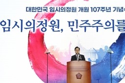 ㈜한국탑뉴스 차복원 기자 | 우원식 의장, 임시의정원 107주년 기념식 참석 “민주주의 정신 계승·개헌 필요” ▲우원식 국회의장이 대한민국 임시의정원 개원 107주년 기념식에 참석 축사를 하고있다. 우원식 국회의장이 대한민국 임시의정원 개원 107주년을 맞아 헌정질서의 뿌리와 민주주의 정신 계승의 중요성을 강조했다. 우 의장은 10일 오전 국회의사당 중앙홀에서 열린 ‘대한민국 임시의정원 개원 107주년 기념식’에 참석해 “대한민국 임시의정원은 주권재민과 삼권분립, 의회정치의 기틀을 세운 최초의 의회”라며 “그 정신은 오늘날 헌법 속에 살아 숨 쉬며 우리의 정치와 사회를 지탱하고 있다”고 밝혔다. 이어 “12·3 비상계엄을 거치며 민주주의를 지키고 헌정질서를 수호하는 데 국회의 중요성이 더욱 분명해졌다”며 “임시정부의 입법기관으로 국정 전반을 관장했던 임시의정원은 바로 국회의 뿌리였다”고 평가했다. 우 의장은 또 임시의정원의 역사적 역할을 언급하며 “임시의정원은 임시정부와 함께 독립운동의 핵심축으로 기능하며 방향과 전략을 논의하는 중심이었고, 통합정부 추진의 정치적 구심점이었다”고 설명했다. 이어 “서로 다른 이념과 투쟁 방식을 가진 인사들이 함께 결정하고 공