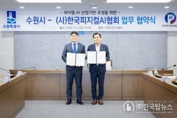 ㈜한국탑뉴스 차복원 기자 | 수원특례시와 (사)한국피지컬에이아이(AI)협회는 6일 시청 상황실에서 업무협약을 체결하고, 피지컬 인공지능(AI) 산업 활성화를 위해 적극적으로 협력하기로 했다. 협약에 따라 양 기관은 피지컬 인공지능(AI) 산업 활성화를 위한 정책·사업을 발굴해 공동 추진하고, 피지컬 인공지능(AI) 관련 학술행사, 포럼, 전시회 등을 공동 개최하기로 했다. 또 피지컬 인공지능(AI) 기술 확산을 위한 산·학·연·관 네트워크를 구축하고, 교류를 확대하기로 했다. 피지컬 인공지능(Physical AI)은 휴머노이드 로봇이나 자율주행차 등 실물 하드웨어에 탑재하는 인공지능(AI)을 말한다. 인공지능 기술을 실제 물리적 환경에서 구현하고 적용해 로봇·스마트 기기 등이 스스로 판단하며 현실 세계와 상호작용하는 기술이다. 이날 협약식에는 이재준 수원시장, 오민범 에이아이(AI)스마트정책국장, 한국피지컬에이아이(AI)협회 유태준 회장, 한상선 부회장 등이 참석했다. 유태준 회장은 “첨단과학연구도시를 향해 나아가는 수원시는 피지컬 인공지능(AI) 산업의 거점이 될 수 있는 최적의 도시”라며 “수