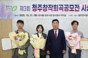 ㈜한국탑뉴스 차복원 기자 | 청주시가 후원하고 (사)청주연극협회가 주최‧주관한 제3회 청주 창작희곡 공모전 시상식이 21일 임시청사 직지실에서 개최됐다. 이번 공모전은 한국 연극계의 새로운 목소리를 발굴하고 창작희곡의 활성화를 도모하기 위해 마련됐으며, 전국에서 다양한 소재와 형식을 담은 77편의 작품이 출품되는 등 뜨거운 관심을 모았다. 심사는 연출가, 극작가 등 연극 전문인으로 구성된 심사위원단이 맡아 작품의 완성도, 독창성, 실연성의 3개 항목에 대한 심사를 진행해 최종 3개의 작품을 선정했다. 최종 선정된 작품은 독창성이 높고 무대화의 가능성이 높다고 평가된 작품으로 대상(상금 1,500만원)은 이홍이 작가의 ‘모스크바의 바다’, 최우수상(상금 1,000만원)은 노동훈 작가의 ‘고민수의 변수 통제 시뮬레이션’, 우수상(상금 500만원)은 서준교 작가의 ‘다이치’에 영광이 돌아갔다. 수상작들은 저작권 계약을 맺고 청주 극단에 공연 제작 우선권을 지원하게 된다. 상을 수여한 이범석 청주시장은 “창작희곡은 한국 연극의 뿌리를 지탱하는 중요한 장르로, 이번 공모전을 통해 참신한 극작가들