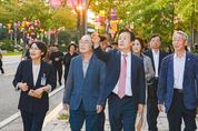 ㈜한국탑뉴스 차복원 기자 | 진주시는 10월 축제와 진주실크박물관 개관에 따른 분위기 조성을 위해 지난 29일 ‘진주실크로드’ 명예도로에 실크등과 공예등 설치를 완료하고 현장점검을 실시했다. 조규일 진주시장과 진주시의회 경제복지위원회 소속 의원, 실크융복합전문농공단지 입주기업체 회원, 문산읍 주민 등 50여 명이 현장을 방문해 설치된 실크등을 점검하고, 진주실크의 아름다움과 정체성을 함께 공유했다. 이번 실크등 전시는 11월까지 시범적으로 진행되며, 설치 구간은 문산읍 ‘실크융복합전문농공단지’ 내 진주실크박물관에서 경남직물공업협동조합까지 양방향 도로를 따라 총 400m이다. 이 구간에 다양한 실크 조각보 문양과 전통패턴을 활용한 진주 실크등 1700여 개를 설치해 ‘실크의 도시 진주’를 상징하는 문화예술 공간으로 탈바꿈시켰다. ‘진주 실크등’은 단순한 조형물을 넘어 진주실크의 유구한 역사와 미적 감각을 시각적으로 구현한 것으로, ‘진주실크로드’ 명예도로가 지역주민과 방문객 모두가 함께 즐길 수 있는 야간 문화공간이 될 것으로 기대를 모으고 있다. 진주를 대표하는 전시 콘텐츠로 각광받고