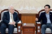 ㈜한국탑뉴스 차복원 기자 | 유정복 인천시장은 12월 3일 오후 인천시청 접견실에서 세계 최고 수준의 의과·바이오 연구 중심 대학인 존스홉킨스대의 조나단 슈넥(Jonathan schneck) 의과대학 교수(왼쪽) 일행을 접견했다. 이번 접견은 12월 4일 인천에서 ‘존스홉킨스대 글로벌 바이오 혁신 서밋’을 개최하게 됨에 따라, 이번 서밋을 주관한 존스홉킨스대학의 교수진과 다양한 협력 방안을 논의하기 위해 마련됐다. 유정복 인천광역시장(가운데), 조나단 슈넥 교수(왼쪽에서 세 번째), 김덕호 존스홉킨스 글로벌 생명공학 혁신 센터장(왼쪽에서 두 번째)는 ▲향후 인천을 거점으로 한 한-미 공동연구 및 바이오 혁신기술 산업화 방안 ▲존스홉킨스대 연구센터(R·D센터) 유치 등에 대한 논의를 이어갈 방침이다. 조나단 슈넥 존스홉킨스대 교수는 “송도를 중심으로 한·미 바이오 협력이 새로운 글로벌 혁신 모델로 정착하길 기대한다”라고 말했다. 유정복 인천시장은 “인천시는 세계적 연구기관과 글로벌 기업, 산업 협회와의 협력을 통해 연구개발부터 산업화, 글로벌 진출까지 연결되는 바이오 산업 생태계 조성을 적극 지원하겠