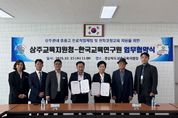 ㈜한국탑뉴스 고화랑 기자 | 경상북도상주교육지원청은 10. 15. 11:00, 교육지원청 2층 소회의실에서 『2025학년도 행복교육 실현을 위한 업무협약(MOU) 체결식』을 주관하고, 한국교육연구원과 함께 지역 학생들의 미래 역량 강화를 위한 공동 협력에 나섰다. 이번 협약은 상주교육지원청이 주도적으로 기획한 것으로, 자유학기제와 연계한 다양한 체험활동, 진로 탐색 기회 확대, 전문 직업인 초청 강연, 맞춤형 진로교육 프로그램 운영 등 지역 학생 중심의 미래 교육 모델을 실현하는 데 목적이 있다. 특히 상주교육지원청은 이번 협약을 통해 교육 현장에서 직접 체감할 수 있는 프로그램을 발굴·운영하고, 한국교육연구원은 연구와 전문 인프라를 지원함으로써, 상주형 교육 혁신 모델을 선도적으로 만들어갈 계획이다. 협약식에는 김종현 교육장을 비롯한 상주교육지원청과 한국교육연구원 관계자들이 참석하여, 학생들의 행복한 성장을 위한 협력 방향을 논의했다. 김종현 교육장은 “상주교육지원청이 중심이 되어 학생들의 꿈과 미래를 키워가는 교육을 실현하고자 이번 협약을 추진했다”며, “앞으로도 지역 학생들이 스스로 진로를 설