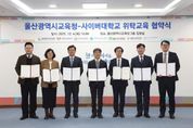 ㈜한국탑뉴스 고화랑 기자 | 울산광역시교육청은 4일 10시 집현실에서 사이버대학 6곳과 교직원 위탁교육 활성화를 위한 업무협약을 맺었다. 이번 협약은 울산교육청 소속 교직원의 자기 계발을 체계적으로 지원해 미래형 평생학습 환경을 조성하고, 교육 전문성을 높이고자 마련됐다. 협약식에는 천창수 교육감을 비롯해 경희사이버대학교, 고려사이버대학교, 사이버한국외국어대학교, 서울사이버대학교, 원광디지털대학교, 한양사이버대학교 등 6곳의 대학 관계자가 참석했다. 협약에 따라 울산광역시교육청 소속 교직원이 산업체 위탁 전형으로 해당 대학에 입학할 경우, 학부 과정은 수업료 50%, 대학원 과정은 20~50% 감면 혜택을 받는다. 지원 대상은 공무원과 교육공무직원, 사립학교 교직원까지 모두 포함된다. 천창수 교육감은 “사이버대학교와 협력해 울산 교육공동체가 유연하게 배우고 성장할 수 있는 기반을 마련했다”라며 “앞으로도 교직원의 평생학습을 꾸준히 지원해 교육의 질을 높이는 데 힘쓰겠다”라고 말했다.