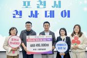 ㈜한국탑뉴스 차복원 기자 | 포천시는 지난 15일 시청 시정회의실에서 ‘선행하기 좋은 날, 포천시 천사데이’ 이웃돕기 기탁식을 개최했다. 포천시는 매월 14일 전후를 ‘천사데이’로 지정해 후원자들이 한자리에 모여 교류하고 나눔의 즐거움을 나누며, 포천시만의 특별한 나눔 문화를 확산하고자 행사를 운영하고 있다. 이번 행사에는 ㈜신미래에너지, 비전나무아동발달코칭센터, 대운농장, 포희나리, 태봉학습마을, (사)월드쉐어 등 6개 기업·단체가 참여하여 이웃사랑을 실천했다. 기탁된 성금과 현물은 총 1,890만 원 상당으로, 포천시 이웃돕기 성금 계좌인 ‘희망곳간’에 예치되어, 취약계층 지원과 수해 피해자 지원에 소중하게 사용할 예정이다. 백영현 포천시장은 “오늘 천사데이에 참석해 이웃에 대한 따뜻한 마음으로 꾸준히 사랑을 실천해 주신 후원자 여러분께 감사드린다”며, “포천시는 앞으로도 이웃사랑이 가득한 도시를 만들기 위해 최선을 다하겠다”고 말했다.