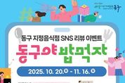 ㈜한국탑뉴스 차복원 기자 | 대구 동구청은 지정음식점 홍보와 외식산업 활성화를 위해 20일부터 11월 16일까지 4주간 ‘동구 지정음식점 홍보 SNS 인증샷 & 리뷰 이벤트’를 실시한다. 전 국민 누구나 참여 할 수 있는 이번 이벤트는 대구 동구맛집 홈페이지에서 이벤트 참여 식당을 확인 후 이용 한 뒤 리뷰를 등록하고 인증하면 된다. 리뷰 등록은 네이버 MY 플레이스 영수증 리뷰 또는 인스타그램에 음식사진과 함께 해시태그 3종(#업소명#대구동구지정음식점#동구맛집맛있어) 게시 2가지 방법으로 할 수 있으며, 이벤트 참여는 대구 동구맛집 홈페이지에서 해당 리뷰를 인증하면 된다. 참여자 중 추첨을 통해 매주 화요일 25명씩 총 100명의 당첨자를 선정해 ‘동구 맛집 명성을 담은 밀키트’ 10선 중 1개와 모바일 커피쿠폰(스타벅스)을 경품으로 증정한다. 윤석준 동구청장은 “이번 이벤트를 통해 동구 관내 다양한 지정음식점을 홍보하여 많은 분들이 동구의 맛을 즐기고 이를 통해 우리 지역 먹거리의 우수성을 널리 알리고 지역경제 활성화에 도움이 되길 바란다”고 말했다.