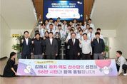 ㈜한국탑뉴스 차복원 기자 | 김해시는 지난 15일 제106회 전국체육대회에 출전하는 시청팀 소속 선수단을 초청해 격려했다고 16일 밝혔다. 이 자리에는 하키단 24명, 역도단 5명 총 29명이 참석했으며 두 종목 모두 경남 대표로 체전에 참가한다. 홍태용 시장은 “이번 전국체육대회는 김해시 체육이 한 단계 더 성장할 수 있는 뜻깊은 무대”라며 “56만 김해시민이 한마음 한뜻으로 시청 선수단을 응원하겠다”고 말했다. 이어 “대회가 끝난 뒤에도 시민들과 함께 지역 체육의 성장과 직장운동경기부의 사회적 가치 실현을 이어가겠다”고 덧붙였다. 제106회 전국체전은 오는 17~23일 부산광역시 82개 경기장에서 열린다. 전통의 하키 강호 김해시청 하키단은 최근 2025 한국대학·실업연맹회장배 하키대회와 제39회 대통령기 전국하키대회를 모두 우승하며 절정의 감각을 끌어올리고 있으며 이달 18일 부산 강서구 강서하키경기장에서 조선대와 전국체전 첫 경기를 치른다. 신흥 명문 역도단은 각종 대회에서 메달을 휩쓸고 있으며 20일 부산 남구 국민체육센터에서 박선영 선수(여자 59kg급)가 출전한