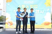 ㈜한국탑뉴스 차복원 기자 | 고창군 이장단 연합회(회장 김형열)가 주최한 ‘제27회 고창군 이장단 가족 한마음대회’가 1일 고창군 실내체육관에서 성황리에 열렸다. 이날 행사는 심덕섭 고창군수, 조민규 고창군의회 군의장 및 군의원, 기관·사회단체장 등 내빈과 관내 이장 및 가족 등 1100여명이 참석해 자리를 빛냈다. 참석자들은 다양한 체육활동과 화합 프로그램을 함께 즐기며 돈독한 유대감을 다졌다. 고창읍 서문마을 현우순 이장을 비롯한 15명이 이웃사랑 실천과 지역발전에 기여한 공로로 군수 표창을 수상, 모범이장으로 선정됐다. 이어진 체육대회에선 2인3각, 투호, 신발던지기 등 세대가 함께 즐길 수 있는 다양한 프로그램이 진행됐고, 참가자들은 환환 웃음 속에서 서로를 응원하며 화합을 다졌다. 김형열 이장단연합회장은 “이번 행사를 통해 이장들 간의 유대감을 더욱 강화하고, 주민과 행정의 가교로서 역할을 재확인하는 계기가 됐다”며 “앞으로도 이장단이 앞장서 ‘군민 모두가 행복한 활력 넘치는 고창, 변화와 성장, 미래를 여는 고창’을 만들어 나가겠다고 포부를 밝혔다. 심덕섭 고창군수는 “행정의