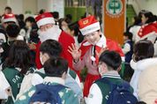 ㈜한국탑뉴스 고화랑 기자 | 대구대봉초등학교는 12월 24일 아침 8시, 성탄절과 겨울방학을 앞두고 강은희 교육감이 참석해‘CARES UP 사랑 나눔 DAY’를 운영했다. 이번 행사는 한 해 동안 열심히 공부한 학생들을 격려하고, 다가오는 겨울방학을 즐겁고 안전하게 맞이하기를 바라는 마음을 담아 마련됐다. 이날 강은희 교육감은 직접 산타클로스 복장을 하고 등교하는 학생 한 명 한 명에게 따뜻한 인사를 건냈다. ‘팝콘처럼 톡톡 터지는 기쁨, 어묵처럼 마음을 데우는 사랑’을 주제로 추운 날씨에 등교하는 학생들을 위해 따뜻한 어묵을 제공하며 온기를 나누고, 달콤한 팝콘을 나누며 성탄절의 설렘을 선사하며 학생들을 응원했다. 대봉초는 행사에 앞서 은행나무뜰과 교내 곳곳을 크리스마스 장식과 포토존으로 꾸미고, 사전 안전지도와 질서 안내를 통해 모든 학생이 안전하고 즐겁게 참여할 수 있도록 준비했다. 행사에 참여한 한 학생은 “아침에 학교에 왔는데 교육감님과 선생님들이 직접 간식을 나눠주셔서 깜짝 놀랐다”며 “친구들과 함께해서 더 즐거웠고, 크리스마스를 앞두고 정말 따뜻한 추억이 생겼다”고 말했