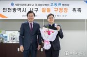 ㈜한국탑뉴스 송행임 기자 | 인천 서구가 지난 19일 가톨릭관동대학교 국제성모병원 고동현 의료원장 겸 병원장을 ‘일일 구청장’으로 위촉했다. 이번 일일 구청장 위촉은 지역 대표 의료기관과의 소통과 협력으로 주민 건강 증진과 지역 발전을 위해 마련됐다. 고동현 병원장은 이날 서구청사를 방문해 강범석 서구청장으로부터 일일 구청장 위촉장을 받고 간부 공무원과의 티타임을 시작으로 ‘일일 구청장’으로서 다양한 일정을 소화했다. 고동현 병원장은 첫 공식 일정으로 2026년 적십자 특별회비 전달식에 참여해 강범석 서구청장과 함께 적십자 특별회비 200만 원을 대한적십자사에 전달했다. 이어 청사 내 주요 행정 현장을 둘러보며 행정 운영을 직접 살폈다. 민원실을 방문해 여권 교부 업무를 직접 체험했으며, CCTV 통합관제센터와 악취·미세먼지 통합관제센터를 방문해 운영 현황을 청취하고 근무 중인 직원들을 격려하기도 했다. 마지막으로 고 병원장은 서구보건소를 방문해 보건소장으로부터 보건소 운영 현황을 듣고 보건소 주요 시설을 둘러봤다. 고동현 병원장은 “평소 쉽게 접하기 어려운 구